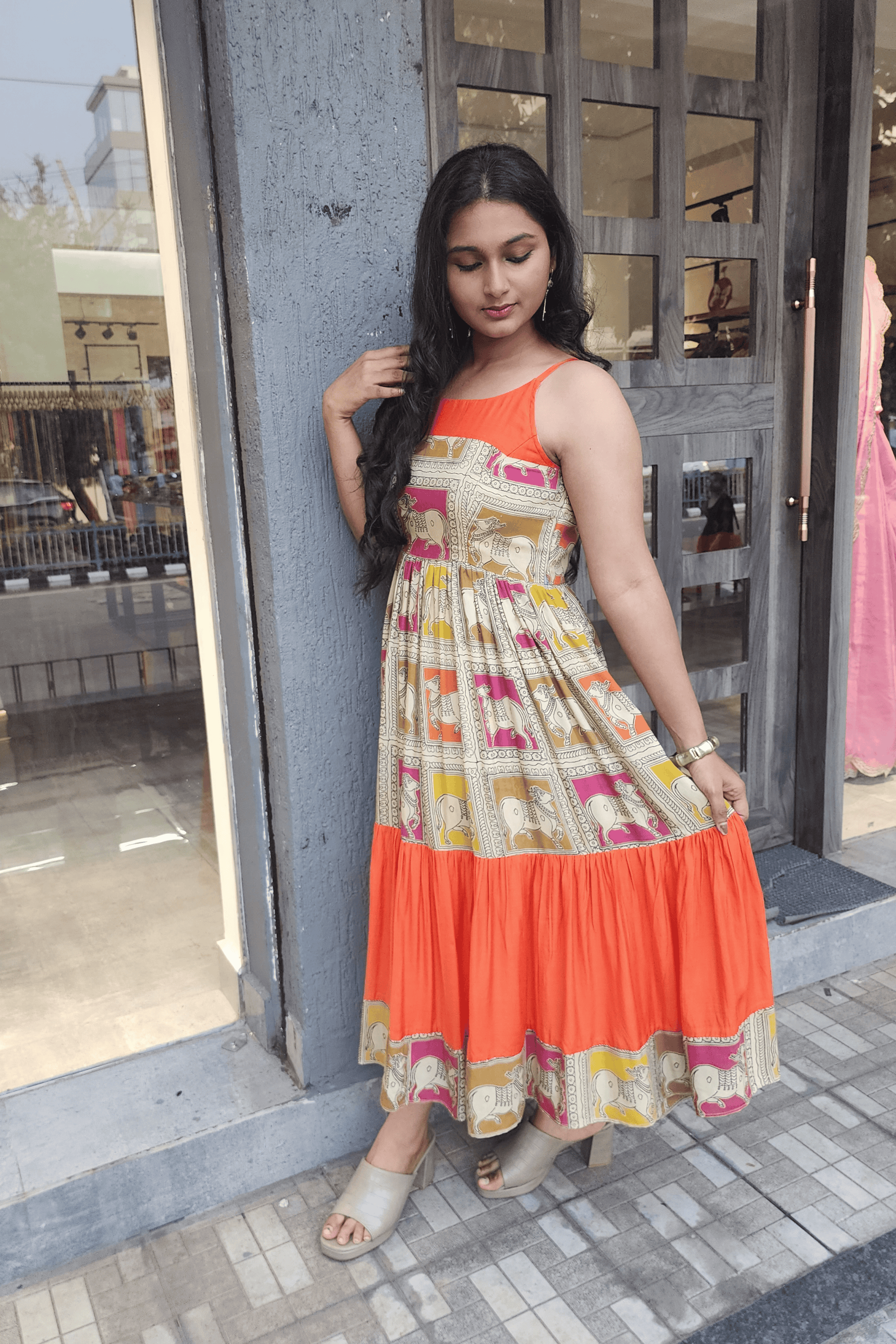 Step into timeless artistry with our Kalamkari Pichwai Print Dress, inspired by traditional Indian motifs and infused with a modern silhouette. This piece brings together vibrant colors, detailed prints, and a flattering, easy-to-wear shape that transitions effortlessly from festive occasions to casual outings.
