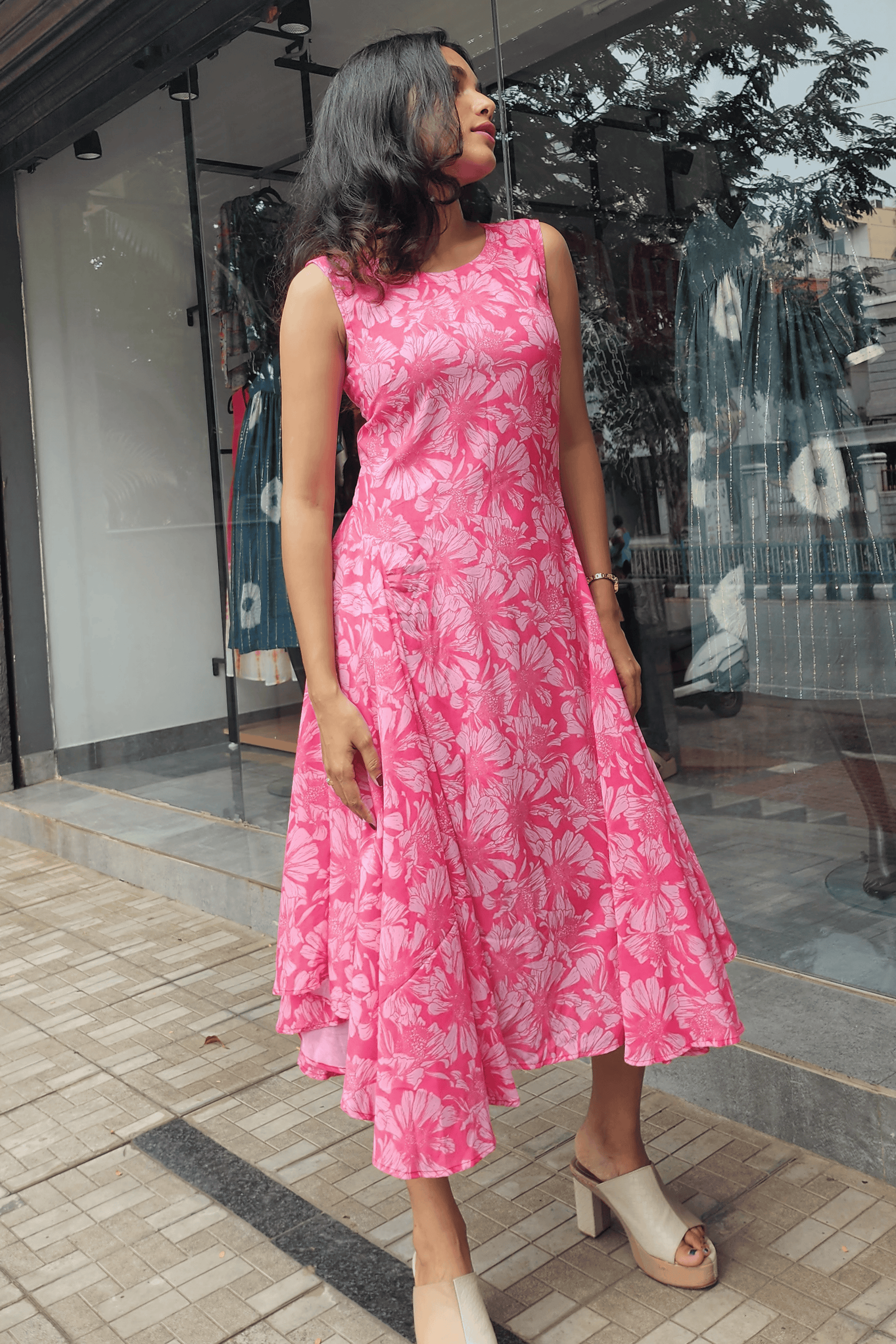 Step into effortless elegance with our Signature Silhouette Pink Floral Dress – a versatile piece designed to flatter every curve. Featuring a side-flared cut that enhances movement, a chic back-tie detail for a custom fit, and a delicate pink floral print, this dress strikes the perfect balance between smart casual and contemporary chic.